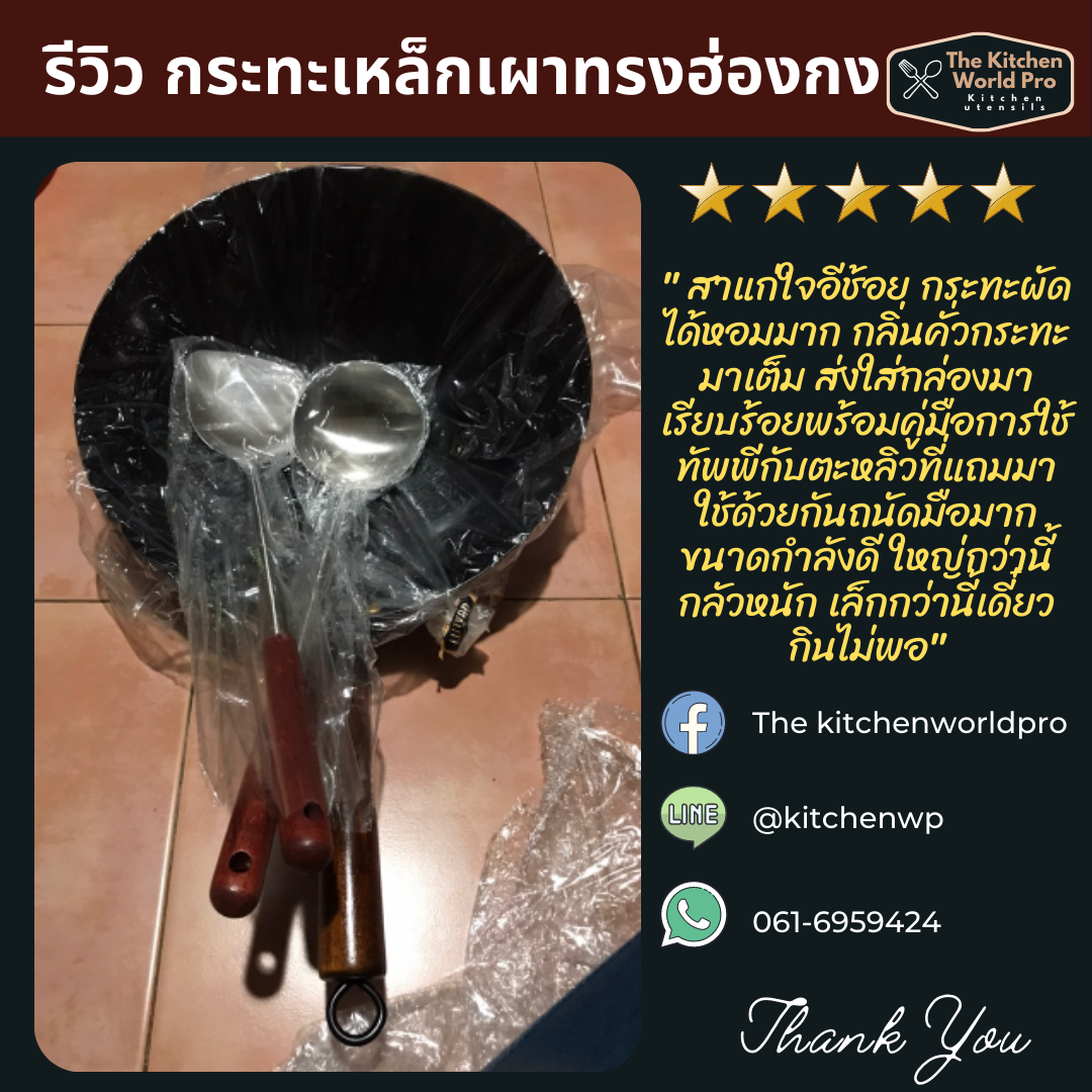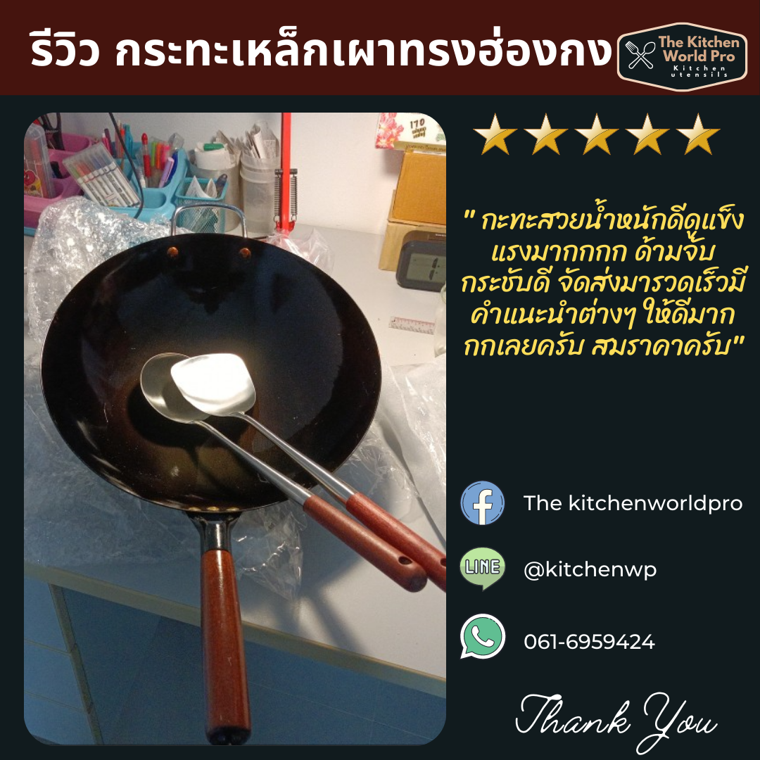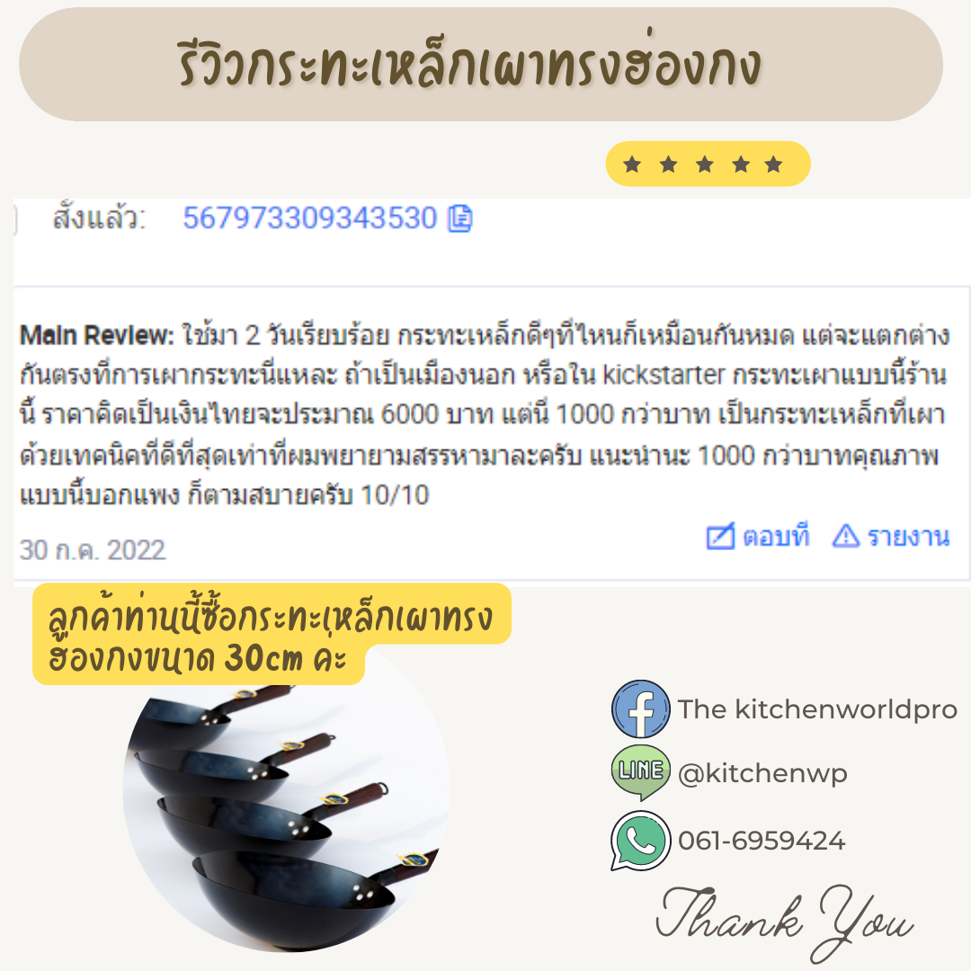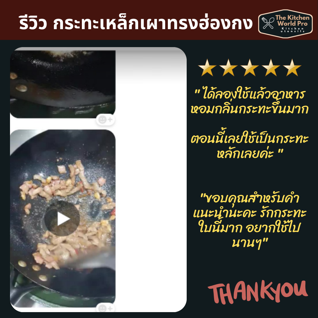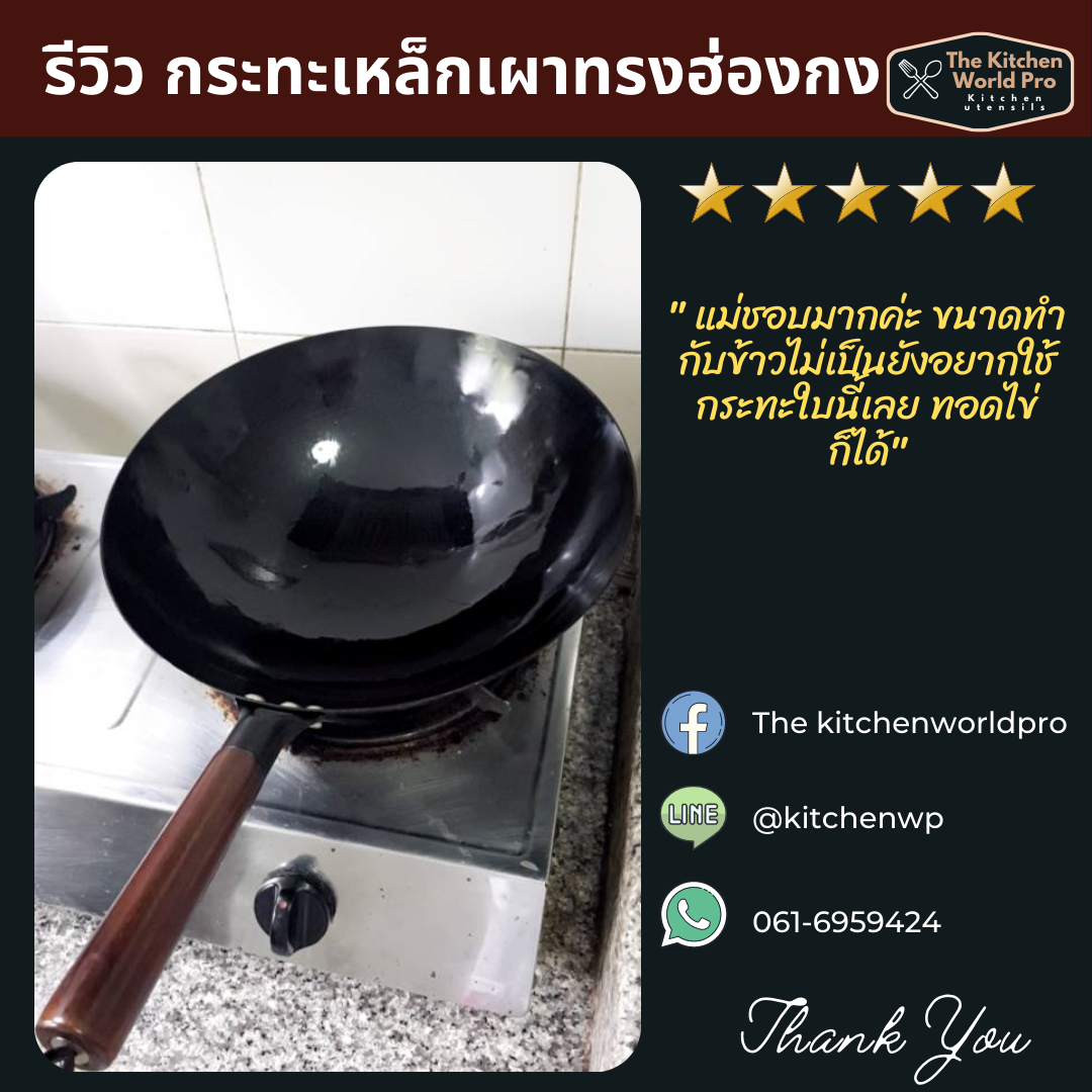 รวบรวมรีวิวกระทะเหล็กเผาทรงฮ่องกง รุ่นนี้ขายดี งานพรีเมี่ยมมากค่ะ กระทะเหล็กแท้เผาสมบูรณ์ สินค้าผลิตในไทย จำหน่ายโดยคนไทยค่ะ